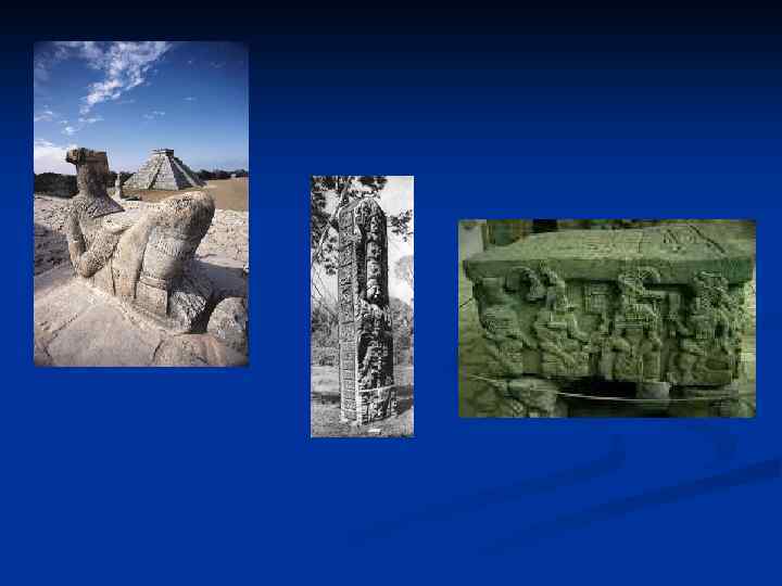 Майя – группа индейских народов, живших на территории юга соврем-ной Мексики, Гватемалы, Гондураса, Сальвадора. Данный народ создал свою письменность. Предки майя пришли в эти места с севера в 3 -4 -м тыс. до н. э. Цивилизация майя сложилась на рубеже нашей эры. Это несколько десятков городовгосударств, наиболее известные из которых Вашактун, Чичен. Ица, Дос Пилас. Города были застроены дворцами на ступенчатых платформах, их украшали монументальная живопись и скульптура.