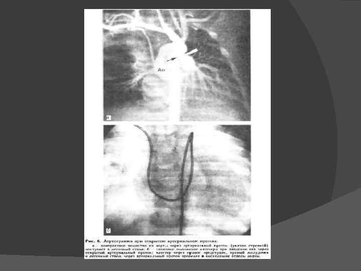 При ангиокардиографии контрастное вещество, введенное в дугу аорты в большой концентрации и в большом количестве, поступает через проток в легочную артерию и в легкие.