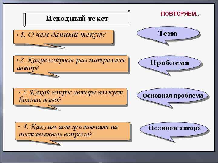 два способа изложения материала: 1)от частных фактов к формулировке проблемы. 2) от формулировки проблемы к комментарию. Можно воспользоваться следующими речевыми клише: - В тексте говорится (повествуется, описывается, автор размышляет, рассуждает и т. п. ) о … - В небольшой по объему статье автор затрагивает несколько важных проблем: … - В рецензируемом тексте можно отметить высокую «плотность мысли» : автор говорит не только о …, но и о …. Такой смысловой емкости автор достигает при помощи …. - Автор не формулирует основную мысль своей статьи, но всем ходом рассуждений подводит нас к выводу: …. - Прочитав текст, я пришел к выводу (я понял, я пришел к заключению, я понял позицию автора). - Содержание текста значительно шире его темы. Рассказывая о …, автор подразумевает …