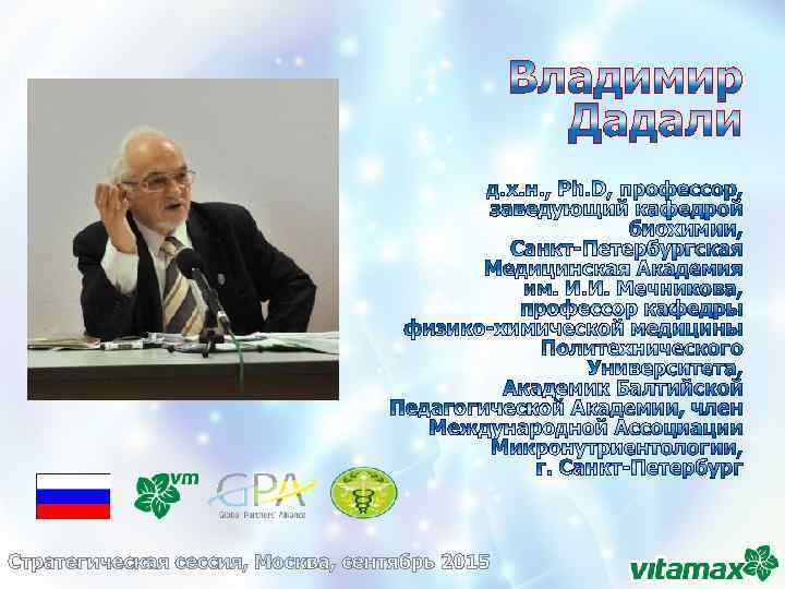Вита. Омега 3 -6 -9 Состав: масло льняное, рыбный жир, масло косточек малины, масло бурачника Свойства: Уникальный комплекс ω-3, ω-6 и ω-9 полиненасыщенных жирных кислот животного и растительного происхождения, в том числе дефицитной γ-линоленовой , богатый натуральным витамином Е и фитостеролами. -способствует восстановлению клеточных мембран, в том числе при повышенном уровне холестерина - Оказывет нормализующее и омолаживающее действие на стенки сосудов -снижает в крови уровень холестерина и особенно триглицеридов крови Цена: 599 руб. / 9, 9 у. е. РЕО: 4, 59