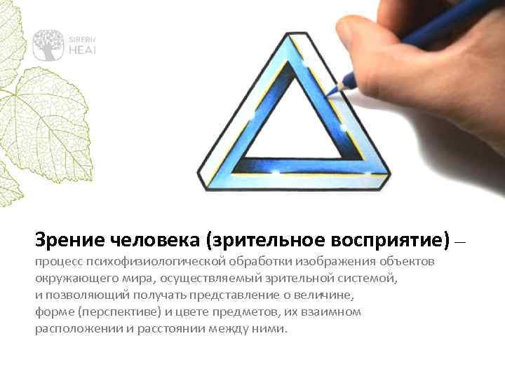 Зрение человека (зрительное восприятие) — процесс психофизиологической обработки изображения объектов окружающего мира, осуществляемый зрительной системой, и позволяющий получать представление о величине, форме (перспективе) и цвете предметов, их взаимном расположении и расстоянии между ними.