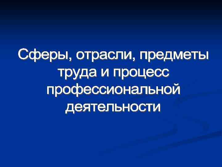 Отрасль и сфера Сфера профессиональной деятельности – это совокупность отраслей, объединённых по определённому признаку n Отрасль – это совокупность предприятий, объединённых однородностью сырья, общностью материально-технической базы и технологичностью процессов. n