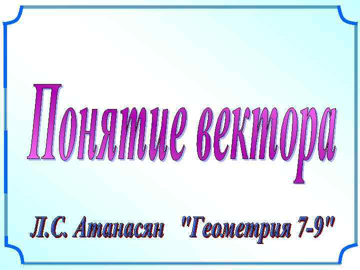Отрезок, для которого указано, какая из его граничных точек считается началом, а какая – концом, называется направленным отрезком или вектором Вектор В Конец вектора Начало вектора А АВ Вектор ВА Длиной или модулем вектора называется длина отрезка АВ АВ = АВ a Вектор a