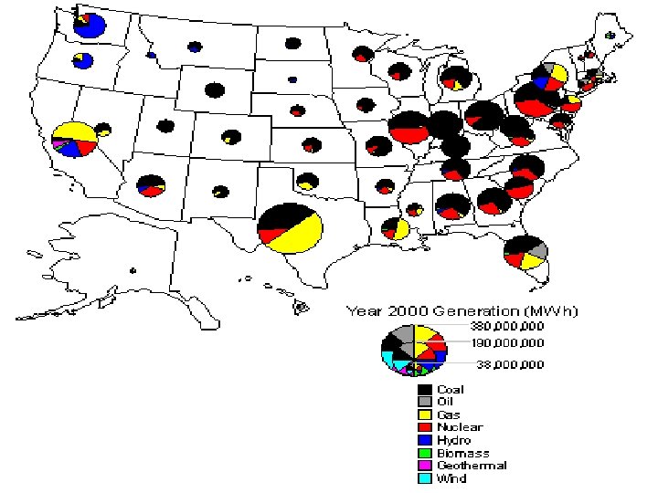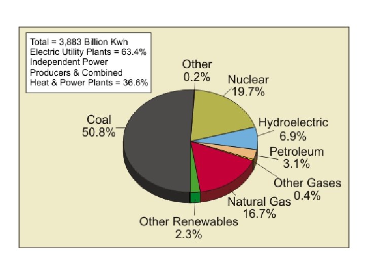 Sources of US Electricity On average, we use 460 Gigawatts (billion watts) Summer demand is 760 GW Average cost is 10¢ per kilowatt hour