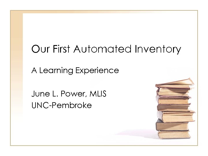 Our First Automated Inventory A Learning Experience June L. Power, MLIS UNC-Pembroke