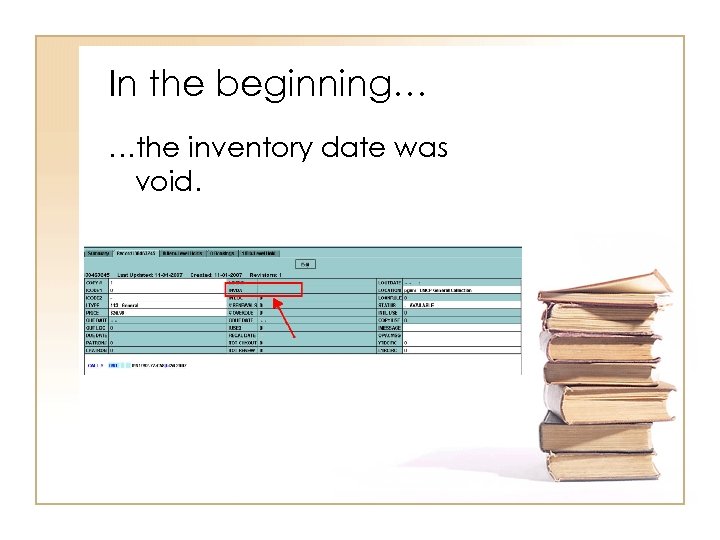 In the beginning… …the inventory date was void.