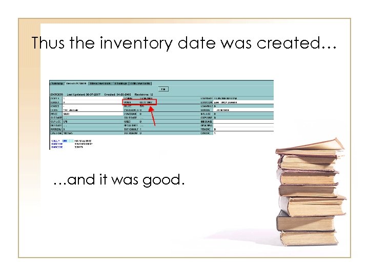 Thus the inventory date was created… …and it was good.