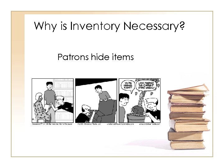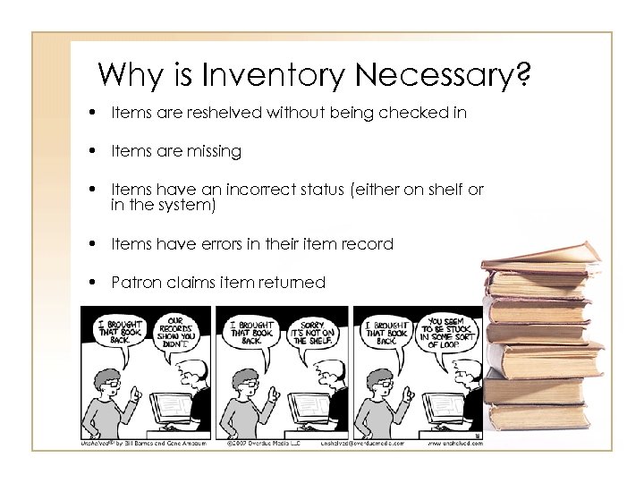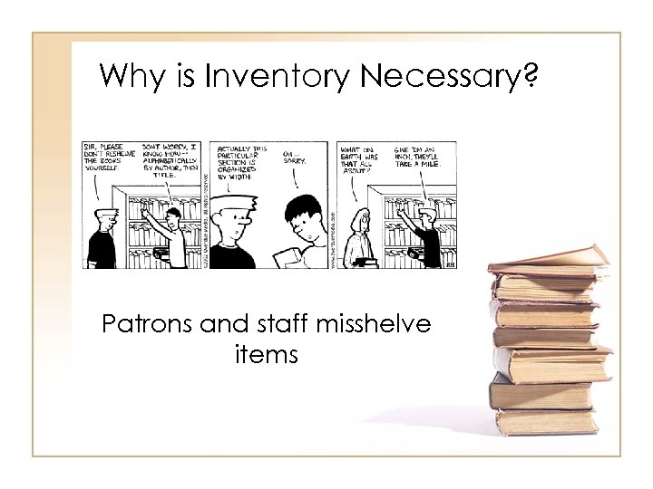 Why is Inventory Necessary? Patrons and staff misshelve items