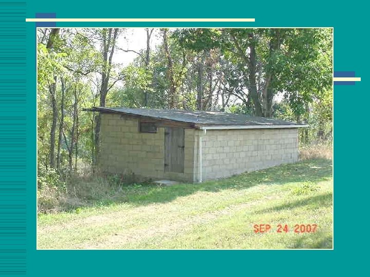 STORAGE BUILDING - 1 w 12 x 24 w Concrete block w Metal roof w/door canopy w Side Window w Metal door w/lock w Concrete floor w/drain w Fluorescent lights w/outlets
