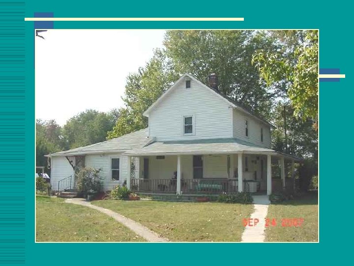HOUSE PARTICULARS w 200 -amp electrical service w Amana 96% FANG w/humidifier + 4 ton AC w New insulated ductwork w Blown insulation walls/ceilings w Whole-house exhaust fan on 2 nd floor w Ceiling fans – 3 -BR’s, LR, DR w Storm doors w/screens w Triple-pane tinted vinyl windows w/screens w Oak hardwood floors w 2 Lighted doorbells w 2 Sensor porch lights w Newer asphalt roof w Wrap-around front concrete porch w/wood railings w 3000 ft driveway-alert system w 2 dusk-to-dawn Fluorex lights w Gas-grill outlet w 60 -gal gas water heater w Burr Oak ‘city’ water w Toilets-only septic system w Cistern w/elec pump for garden/flowers w Backup generator