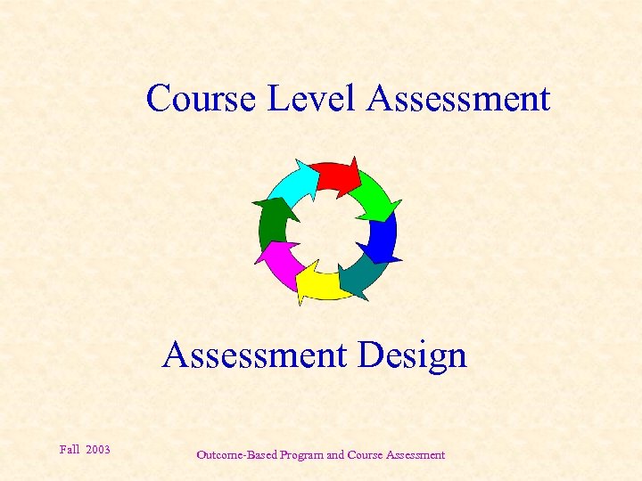Course Level Assessment Design Fall 2003 Outcome-Based Program and Course Assessment