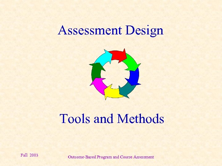 Assessment Design Tools and Methods Fall 2003 Outcome-Based Program and Course Assessment