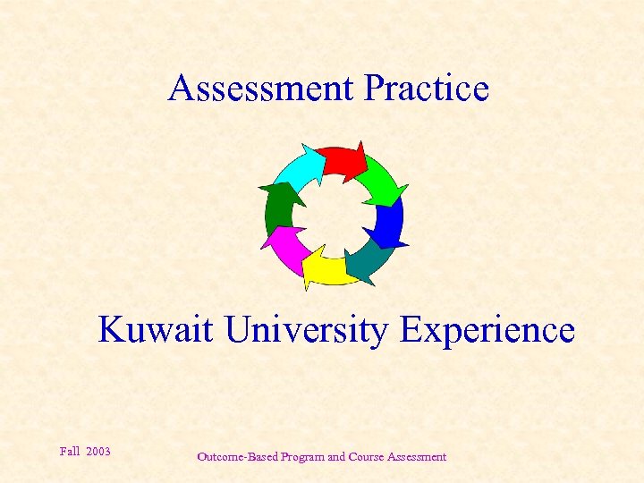 Assessment Practice Assessment at Kuwait Univ. Fall 2003 Outcome-Based Program and Course Assessment