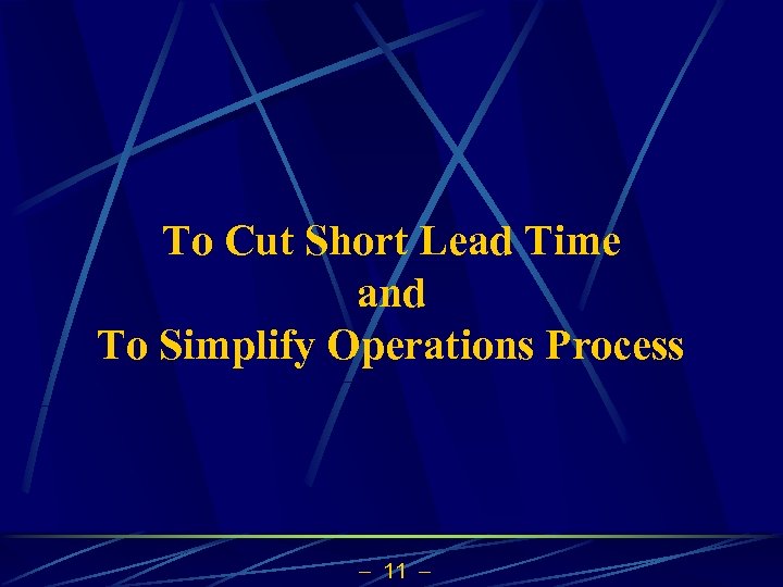 To Cut Short Lead Time and To Simplify Operations Process 11