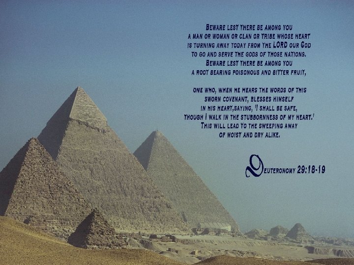 MOSES WARNING • Moses issues a strong warning, both to individuals and groups against the sinful worship practices of other nations. • Idol worship is compared to a root that grows into a plant producing fruit of bitter poison. • The sinful action of a few spread poison throughout the entire people. • How does the happen in the church today?