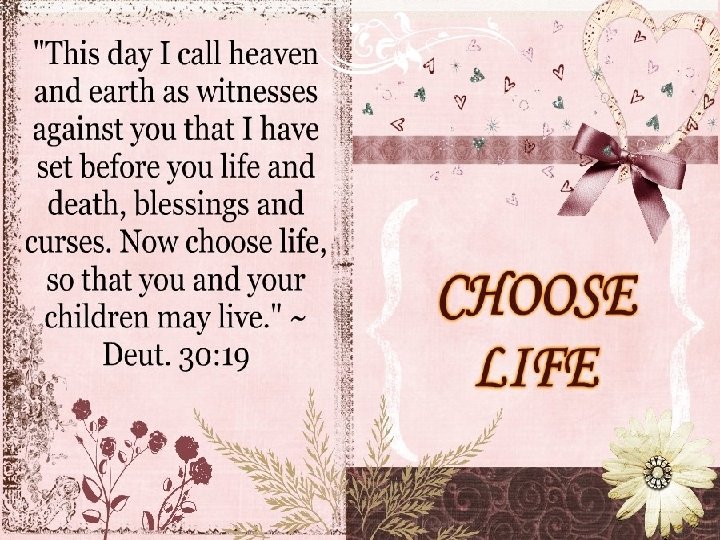 Choose Life or Death • The Lord’s declaration to his people to choose life is inseparable from His covenant of grace that He established with them. • Israel’s history clearly demonstrates that they spurned the life of God had reserved for them through His grace, pursuing death instead. • Consequently, by rejecting God’s grace, they rejected the length of days God promised to those who love the Lord, walk in His ways, and keep his commands.