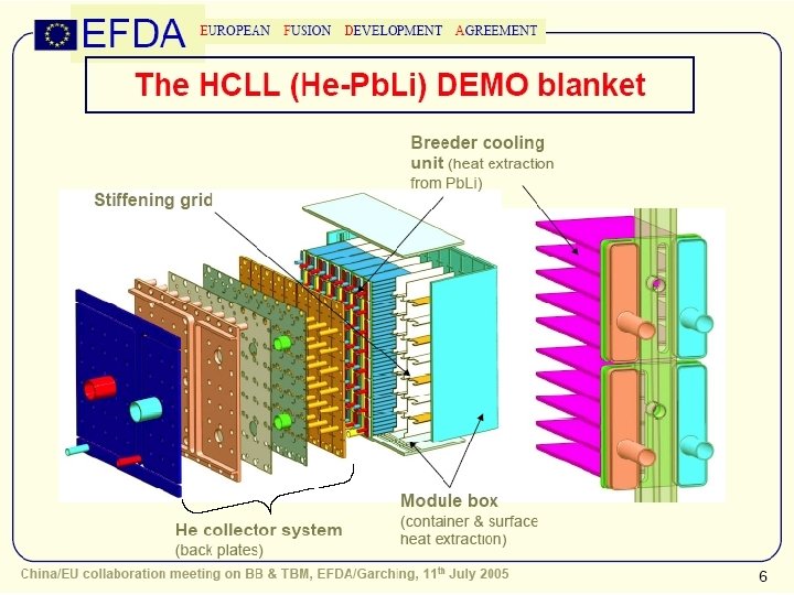 EU TBMs for ITER HCLL TBM HCPB TBM • Orientation: horizontal (half ITER port) • Dimensions (mm): 740 x 1270 x ~700 (to be updated according to ITER port frame design optimization) • 18 breeder cells (203 x 222) mm 2 Max. • He flow: ~1. 8 kg/s • Adapted DEMO He flow scheme • Orientation: vertical (half ITER port) • Dimensions (mm): 626 x 1838 x ~575 (assuming a frame wall thickness of: 140 mm external wall, 100 mm central wall; can be updated according to reference frame design) • 24 breeder cells (180 x 214) mm 2 Max. • He flow: ~1. 7 kg/s • Adapted DEMO He flow scheme