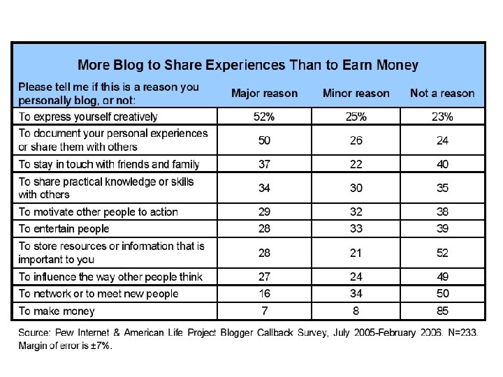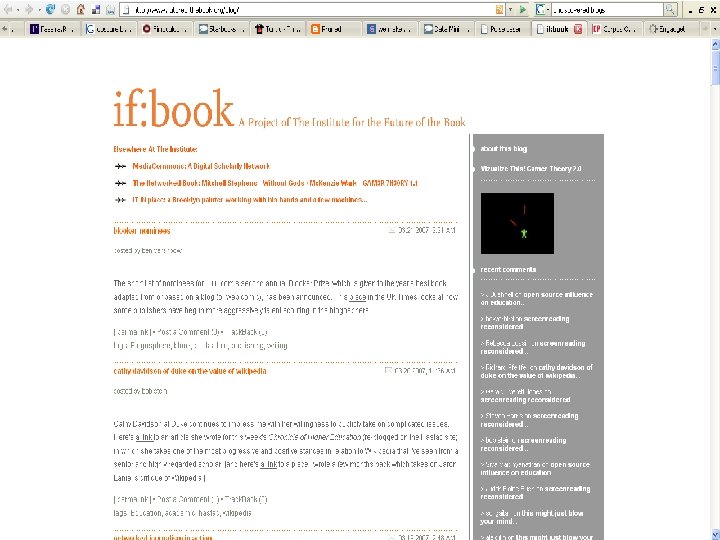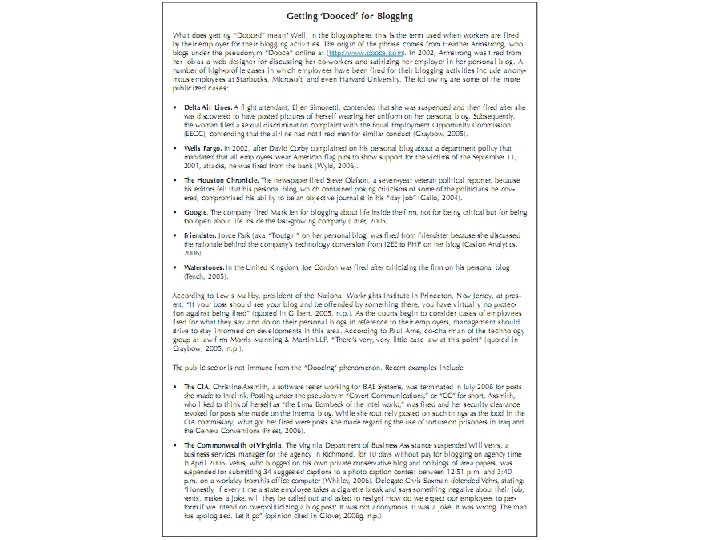 Wider Applications • Hard to make money yet; but can be a good complementary tool • Intended and unintended consequences on your career • Increased visibility: good for some things, bad for others • Can easily turn into an important pundit whose opinion is sought • Can be a very easy break into mainstream media—a great career in journalism • Can eventually write a book, like most famous bloggers do!