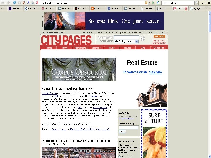 “Journalism that bloggers do”/Jay Rosen I August, 2004. Chris Allbritton goes to Najaf. Reporting for his reader-supported blog Back-to-Iraq. com during the major fighting around the Imam Ali Shrine, Allbritton manages to get inside to interview members of the Mahdi army and report what's happening. He's then arrested by the Najaf police under live fire but lives to write about it. June, 2007. Pet-food scandal ignites blogosphere. Pet owners frustrated with the limitations of the news media self-organize into a national network of sites and share news about tainted foods that may have killed thousands of pets across the country. March, 2007. Firedoglake at the Libby Trial. Popular lefty political blog provides the only blow-by-blow coverage of the trial by splitting the work among six contributors who bring big knowledge to bear for a committed-to-the-case readership. Reporters come to rely on the blog for its updates and its accuracy in live-blogging and analysis. 2003 to present. Groklaw becomes the go-to source for coverage of SCO vs. IBM. Law blog -- one obsessive blogger, plus readers - takes on saturation coverage of key lawsuit involving open-source software, becomes an authoritative source of knowledge for the case's participants, who have never seen anything like it. September 2004. Joseph Newcomer provides comprehensive examination of disputed Killian memos in CBS report. A computer typesetting expert, he uses his knowledge to cast serious doubt on the authenticity of documents "60 Minutes" relied on in its story on President Bush's Air National Guard service. February, 2006. NASA political appointee resigns. Graduate student and science blogger Nick Anthis finds out that 24 -year-old George Deutsch, a political appointee accused of trying to silence NASA climate scientists, lied on his resume about having a college degree. Deutsch resigns. 2007 to present. Blogger Michael Yon reports from Iraq. Supported primarily by donations from readers, independent journalist Michael Yon -- a former Green Beret -- is spending 2007 embedded with soldiers whose courage and sacrifice he admires, and whose stories he tells, mostly recently from Anbar province.