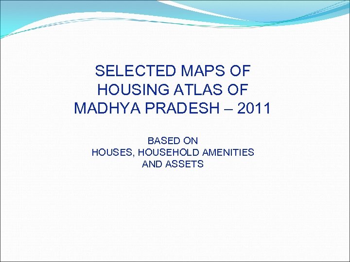 SELECTED MAPS OF HOUSING ATLAS OF MADHYA PRADESH – 2011 BASED ON HOUSES, HOUSEHOLD AMENITIES AND ASSETS
