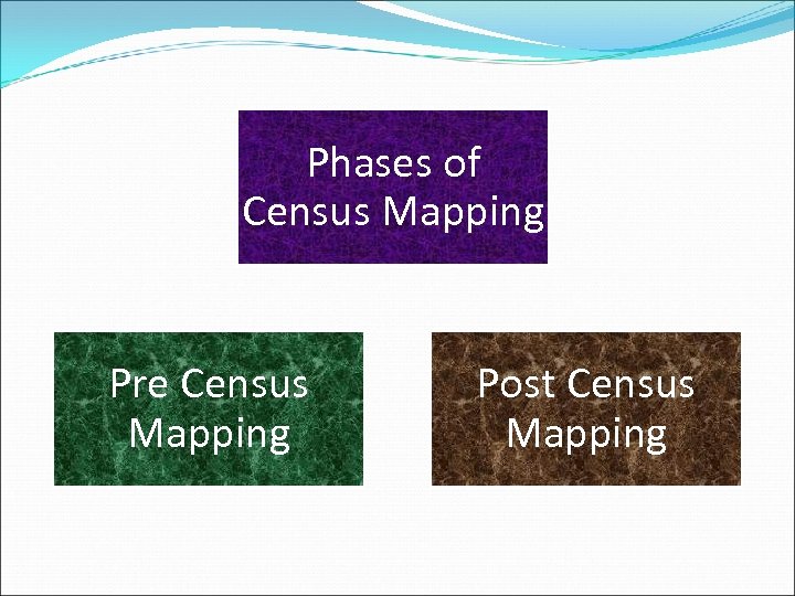 Phases of Census Mapping Pre Census Mapping Post Census Mapping