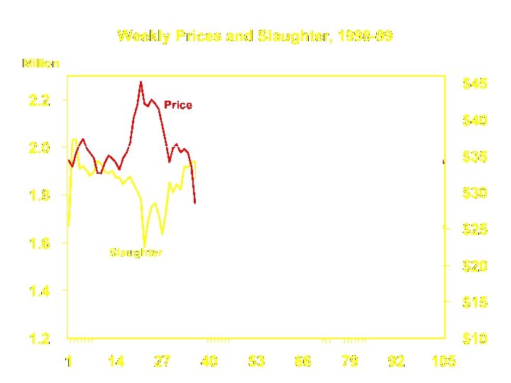 US Corn Price, 1995 -96 to 2004 -05 Crop Years Crop Year 1995 -96 1996 -97 1997 -98 Quantity 8974 9672 10099 Price 3. 24 2. 71 2. 43 1998 -99 1999 -00 2000 -01 2001 -02 2002 -03 2003 -04 2004 -05 11085 11232 11639 11416 10578 11190 12780 1. 94 1. 82 1. 85 1. 97 2. 32 2. 42 1. 95