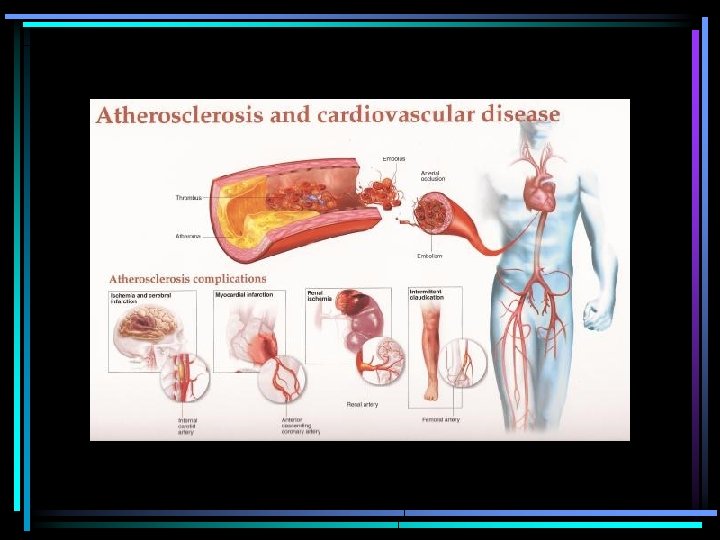 The underlying mechanisms • Depending on the disease • Coronary artery disease, stroke, and peripheral artery disease, aneurysm involve atherosclerosis. – Caused by high blood pressure, smoking, diabetes, lack of exercise, obesity, high blood cholesterol, poor diet, and excessive alcohol consumption • Rheumatic heart disease may follow untreated streptococcus throat infection