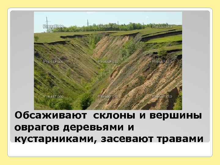 Обсаживают склоны и вершины оврагов деревьями и кустарниками, засевают травами