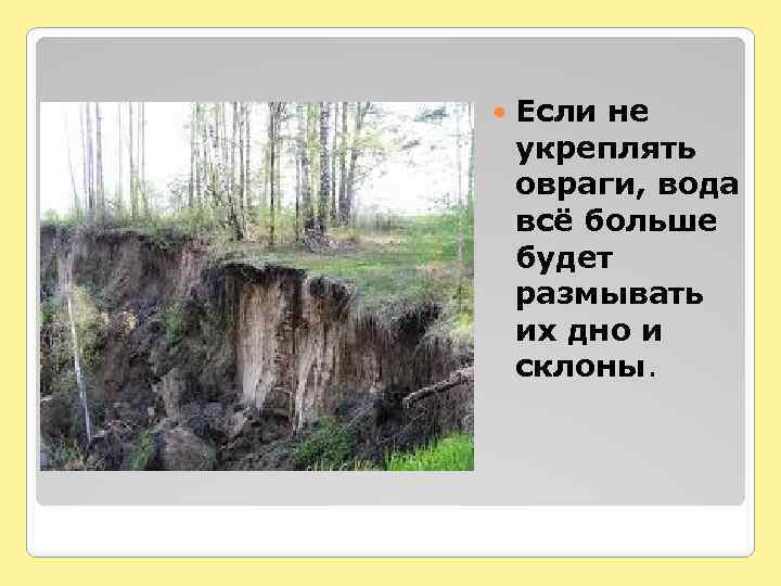 Если не укреплять овраги, вода всё больше будет размывать их дно и склоны.