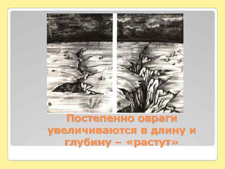 Постепенно овраги увеличиваются в длину и глубину – «растут»