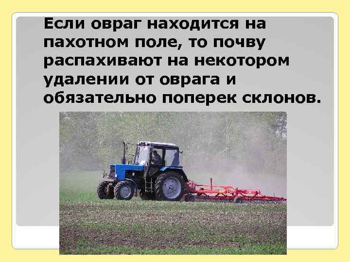 Если овраг находится на пахотном поле, то почву распахивают на некотором удалении от оврага и обязательно поперек склонов.