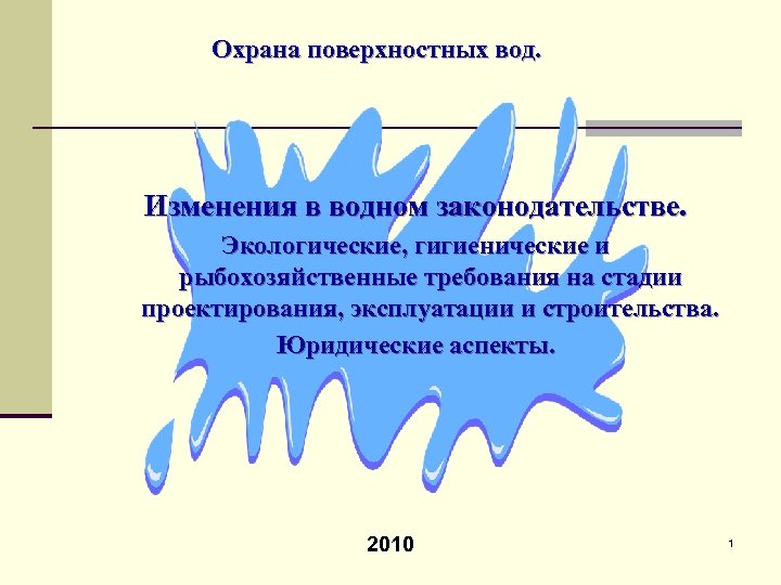 Охрана поверхностных вод. Изменения в водном законодательстве. Экологические, гигиенические и рыбохозяйственные требования на стадии проектирования, эксплуатации и строительства. Юридические аспекты. 2010 1
