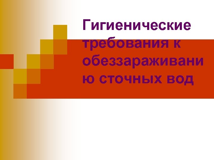 Гигиенические требования к обеззараживани ю сточных вод