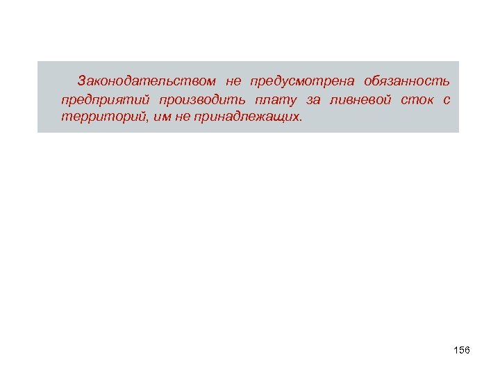 Законодательством не предусмотрена обязанность предприятий производить плату за ливневой сток с территорий, им не принадлежащих. 156
