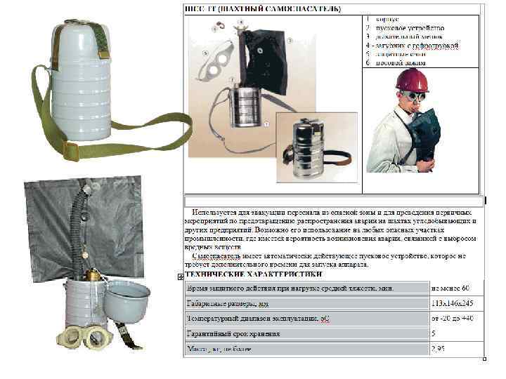 5. 1. Горноспасательная часть. Средства индивидуальной защиты Основные функции ВГСЧ: • работа по спасению людей застигнутых аварией; • ликвидация аварий в шахте; • тушение пожаров на поверхности, если они могут проникнуть в выработки; • осуществление комплекса мероприятий по предупреждению аварий. Горноспасательная газо-защитная аппаратура В газо-защитных аппаратах применяются следующие схемы дыхания: • Открытая схема. Воздух для вздоха из атмосферы; • Полуоткрытая схема. Воздух для вдоха из системы, а после выдоха удаляется в атмосферу (изолирующий противогаз, акваланг); • Закрытая система воздух циркулирует внутри системы. Требования к респираторам: • должны защищать, при содержании: СО до 10%; сернистого газа до 2%; сероводорода до 1%; до 100% СО 2, СН 4, N; • должны быть рассчитаны на ходьбу по горным выработкам; • основные респираторы срок защиты 4 е часа, вспомогательные 1 3 часа; • температура вдыхаемого воздуха, при температуре окружающей среды 25 градусов не более 42 градусов.