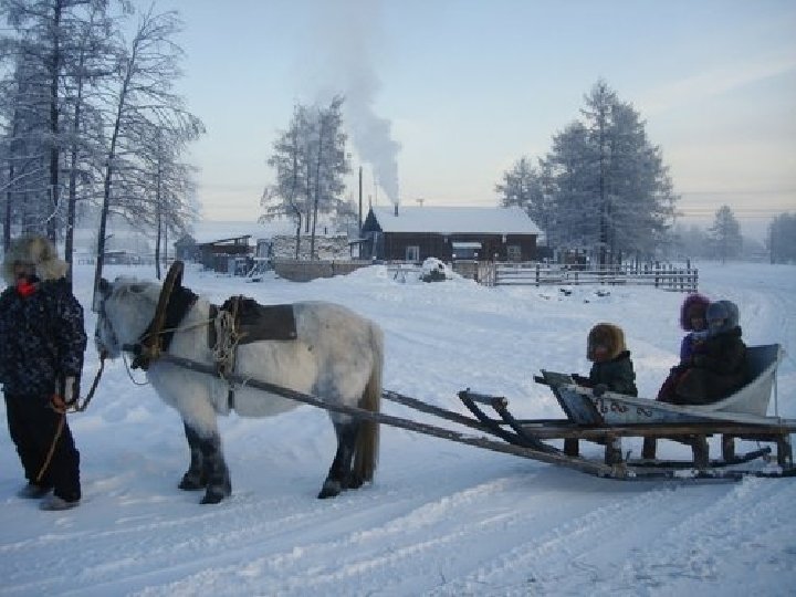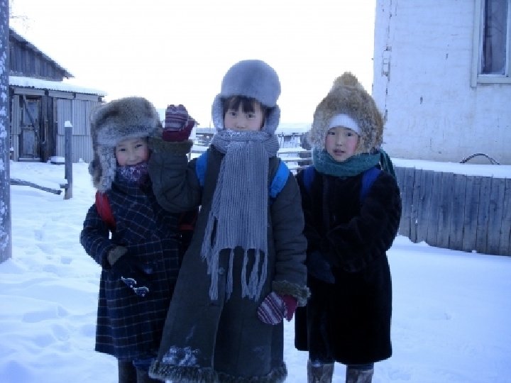 Its population of 2200 inhabitants lives far from the amenities that usualy cities provide. The students attend classes only if the temperature does not fall under -52 ° C. A népessége 2200 fő és kényelme messze van attól, amit általában a városok nyújtanak. A diákok iskolába csak akkor mennek, ha a hőmérséklet nem esik -52 ° C alá.