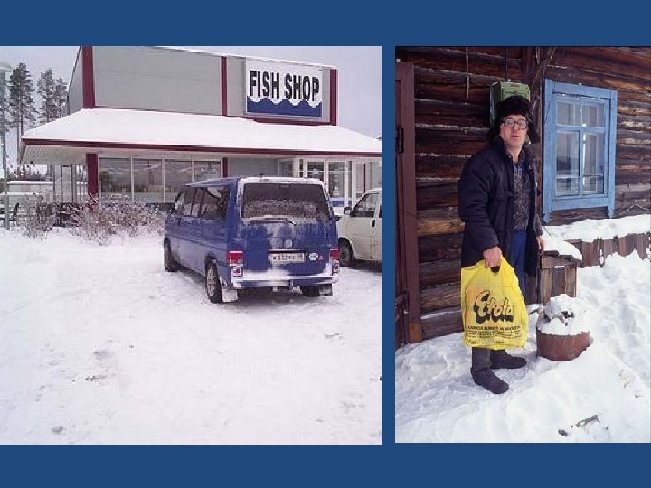 During fishing, the fish is already covered with ice as it leaves the water. Thirty seconds is enough for it to be frozen hard as a rock. Another curiosity of this place is; in a supermarket no one can buy a carton of milk, there is no milk in liquid form, but only frozen like a marble block. Halászat közben, amint a halat kiemelik a vízből már jég borítja. Harminc másodperc elég, hogy olyan keményé fagyjon, mint a kő. Egy másik érdekessége ennek a helynek; senki sem vásárohat a szupermarketben egy karton tejet, mert folyékony tej nincs, csak fagyott állapotban, mint egy márvány darab.
