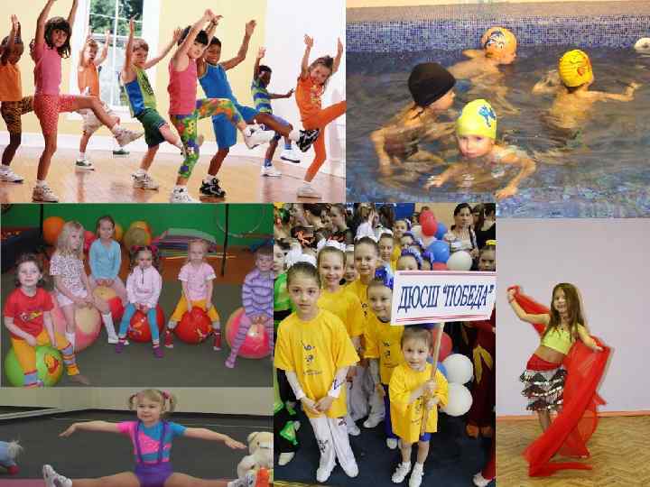 В возрасте 6 -10 лет предлагаются - танцы, силовые и гимнастические упражнения со специальным оборудованием и в игровой форме. n 1. "Здоровые спинки" - оздоровительное занятие с использованием фитболов и другого дополнительного оборудования, направленное на формирование правильной осанки, развитие основных мышечных групп, укрепление связок, сухожилий и профилактику плоскостопия. Продолжительность 45 -60 минут. n 2. "Карате-Kids" - обучение элементам самообороны и основам восточных единоборств, позволяющих развить в себе не только ловкость и остроту реакции, но и умение различать добро и зло, применять свою силу и знания только во благо! Продолжительность 60 минут. n 3. "Чанбара" - фехтование на эластичном оружии полноценно развивает все позитивные качества- подвижность, ловкость, выносливость, решительность, умение предвидеть ситуацию! Продолжительность 60 минут. n 4. "Я танцую" - танцевальная и спортивная хореография, аэробика в игровой форме, основы современного танца. Продолжительность 60 минут. n 5. "Акробат" - обучение основам спортивной акробатики. Строим "пирамиды", делаем "колесо". Развиваем силу, гибкость, равновесие, используя дополнительное оборудование. Продолжительность 45 -60 мин.
