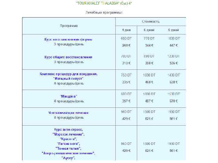 Лечебный курорт Хаммамет Здесь расположен четвертый по величине Центр талассотерапии. В отличии от многих Центров талассотерапии на лечебном курорте Хаммамет используется свежая морская грязь, а не фасованная. Купаться в бассейне с морской водой можно бесплатно. Природно-климатические факторы лечебного курорта Хаммамет Морской воздух и морская вода. Благоприятно влияют на дыхательные пути, обмен веществ и кожный покров Основные показания для пребывания • артроз • ревматизм • боли в спине, шее, суставах • заболевания сердечно-сосудистой системы • плохой обмен веществ • стресс • депрессия