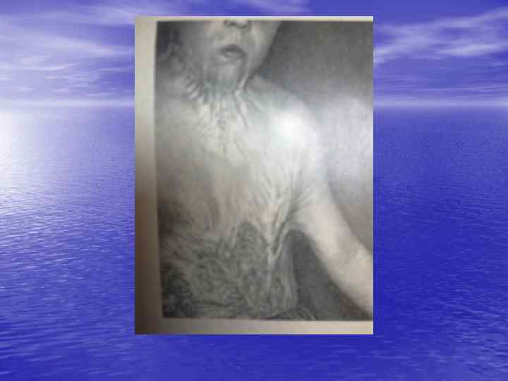 ПО ГЛУБИНЕ ПОРАЖЕНИЯ (КРЕЙБИХУ) • 1 степень- поражение эпидермиса • • покраснение , отек поверхностного слоя кожи (эритема) 2 степень-поражение эпителия до сосочкового слоя с образованием пузырей 3 степень-некроз кожи с захватом базального(росткового) слоя эпидермиса 4 степень-некроз всей толщи кожи 5 степень- некроз всей кожи и нижележащих тканей