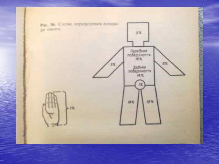 ПРАВИЛО “СОТНИ" • (Возраст + площадь ожога в %) • - до 60 –прогноз благоприятный • - 61 – 80 – относительно благоприятный • - 81 – 100 – сомнительный • - более 100 - неблагоприятный