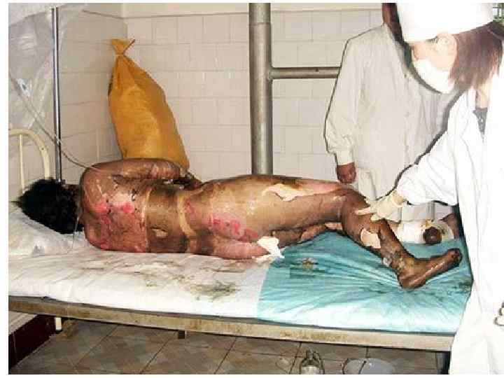 ОЖОГОВАЯ БОЛЕЗНЬ. • Признаки ожоговой болезни наблюдаются при ожогах, занимающих более 15% поверхности тела. У маленьких детей и лиц пожилого возраста ожоговая болезнь может развиваться и при менее обширных ожогах (8 -10% поверхности тела) и может привести к летальному исходу. • Критическим состоянием считают тотальный (100%) ожог I ст. и 30% ожог II и IIIа ст. • Опаснымим для жизни являются ожоги III и IV ст. лица, гениталий и промежности, если они превышают 10%, и конечностей › 10%.