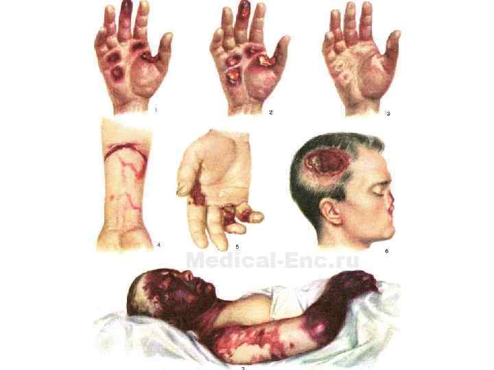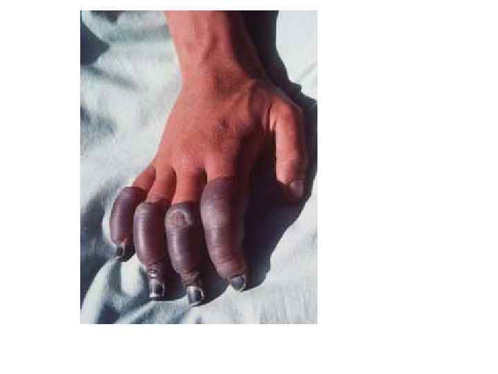 Задача • Девочка 10 лет жалуется на боли в области обеих кистей, онемение конечности. Стало известно, что она находилась на морозе без перчаток в течение 2 часов. Кожные покровы кистей рук цианестичны, определяется мраморность кожи, чувствительность нарушена, имеются пузыри, наполненные светлым содержимым.