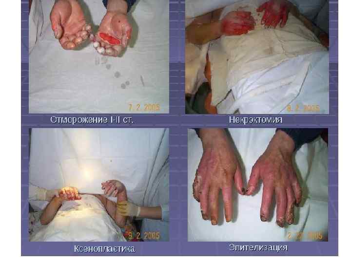 ОТМОРОЖЕНИЯ • Отморожением (congelatio) называется поражение, возникающее под влиянием низких температур и проявляющееся некрозом и реактивным воспалением тканей.