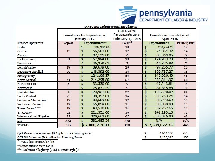 PA Labor & Industry Update USDOL Quarterly Report Dashboard Update
