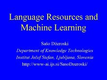 Language Resources and Machine Learning Sašo Džeroski Department