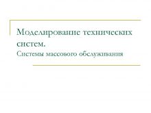 Моделирование технических систем Системы массового обслуживания Моделирование