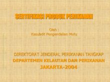 SERTIFIKASI PRODUK PERIKANAN Oleh Kasubdit Pengendalian Mutu