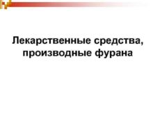 Лекарственные средства производные фурана Цель лекции рассмотреть