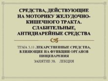 СРЕДСТВА ДЕЙСТВУЮЩИЕ НА МОТОРИКУ ЖЕЛУДОЧНОКИШЕЧНОГО ТРАКТА СЛАБИТЕЛЬНЫЕ АНТИДИАРЕЙНЫЕ